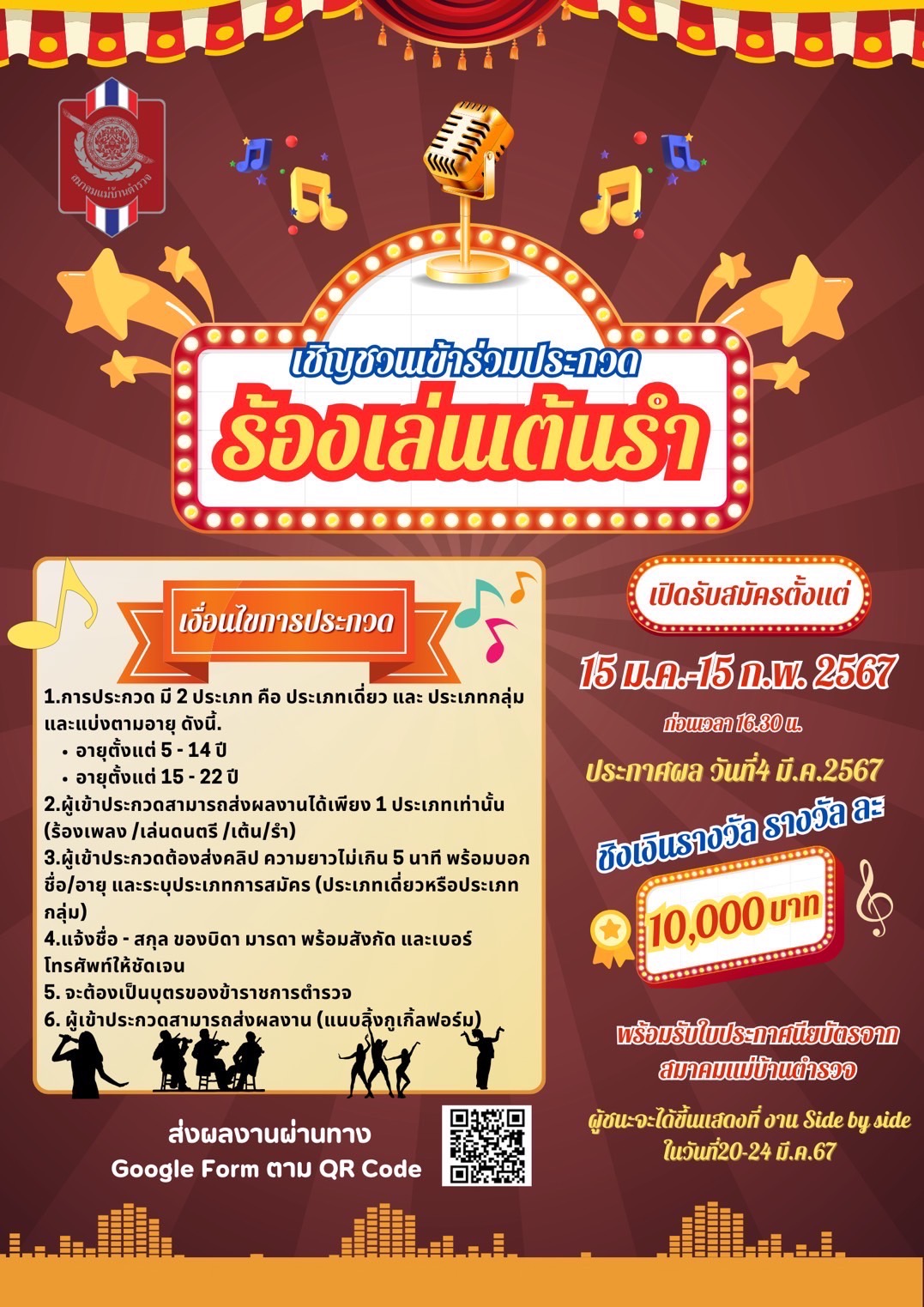 สมาคมแม่บ้านตำรวจ ขอเชิญชวนร่วมกิจกรรมการประกวด “ร้อง เล่น เต้น รำ” ประจำปี 2567 คุณนิภา