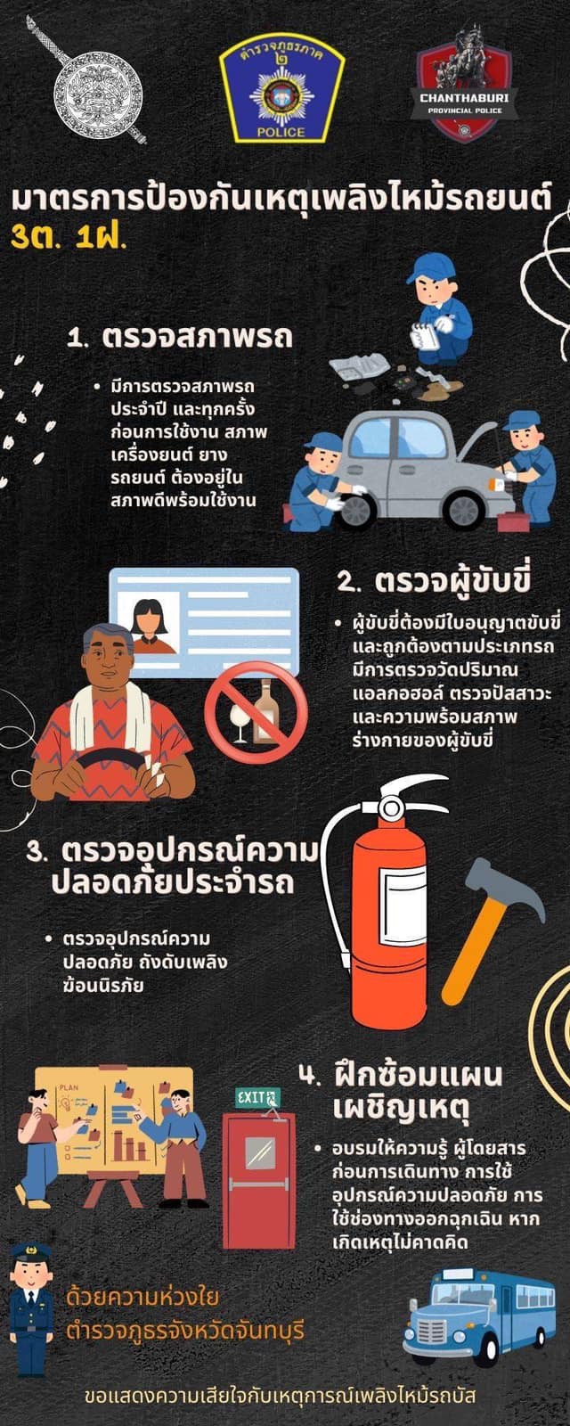มาตรการป้องกันเหตุเพลิงไหม้รถยนต์ 3ต.1ฝ