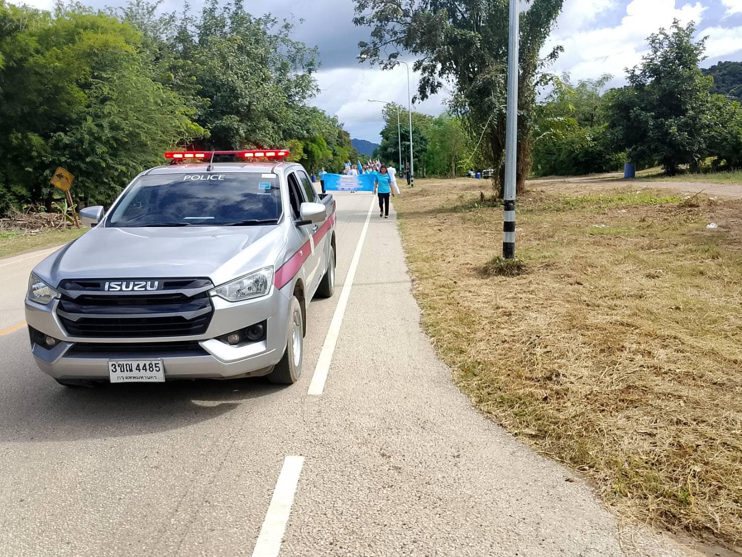 อำนวยความสะดวกด้านการจราจร ขบวน อัญเชิญเงินขวัญถุงพระราชทานกองทุนแม่ของแผ่นดินบ้านคลองแจง