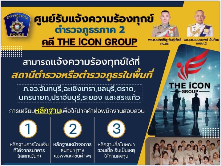 “ศูนย์รับแจ้งความ คดี THE iCON GROUP” ทั่วประเทศ 9 ศูนย์