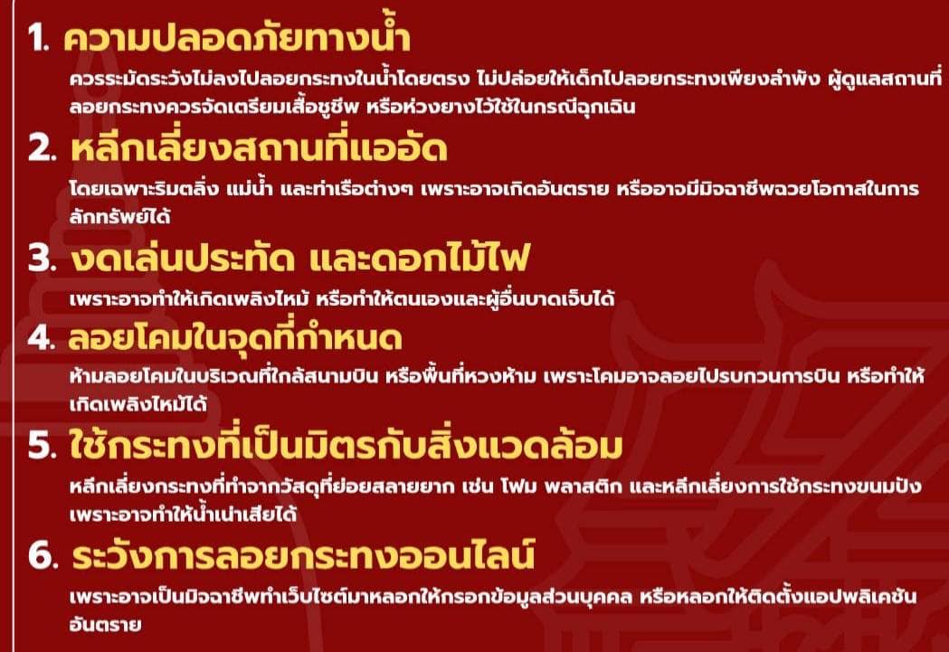 ข้อควรระวัง และพึงปฏิบัติ ในเทศกาลลอยกระทง