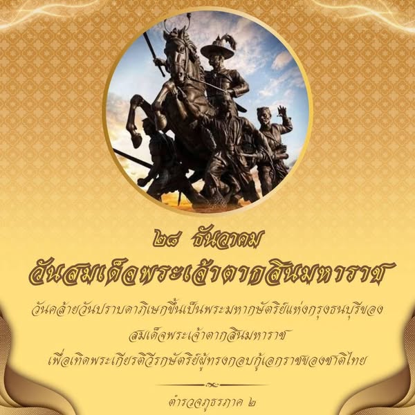 ๒๘ ธันวาคม วันสมเด็จพระเจ้าตากสินมหาราช วันคล้ายวันปราบดาภิเษกขึ้นเป็นพระมหากษัตริย์แห่งกรุงธนบุรีขอ